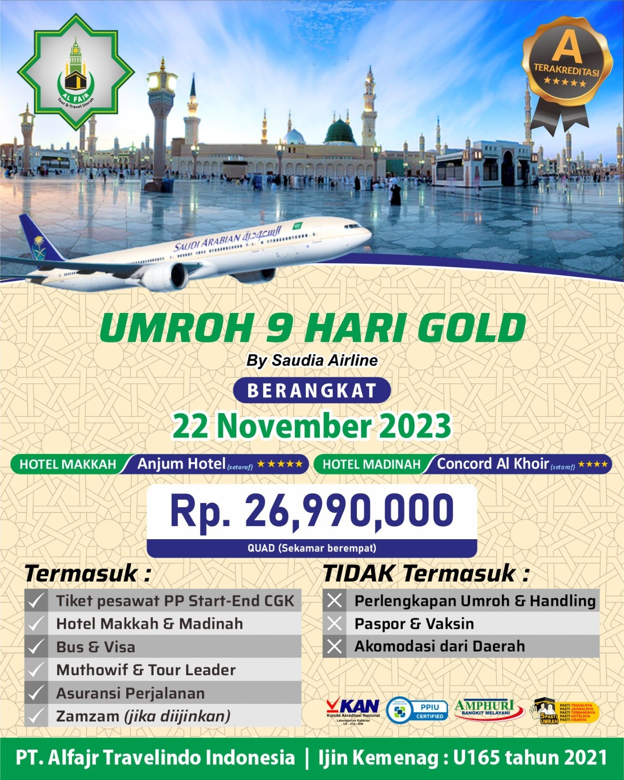 Umroh 9 Hari GOLD by Saudia Airlines | 22 November 2023